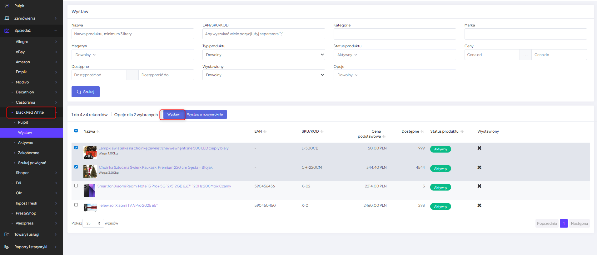 - Zaznacz przynajmniej jeden produkt i naciśnij przycisk „Wystaw”:
