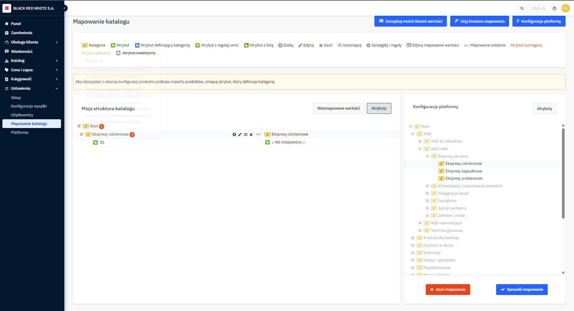 - Przejdź do zakładki Ustawienia > Mapowanie katalogu