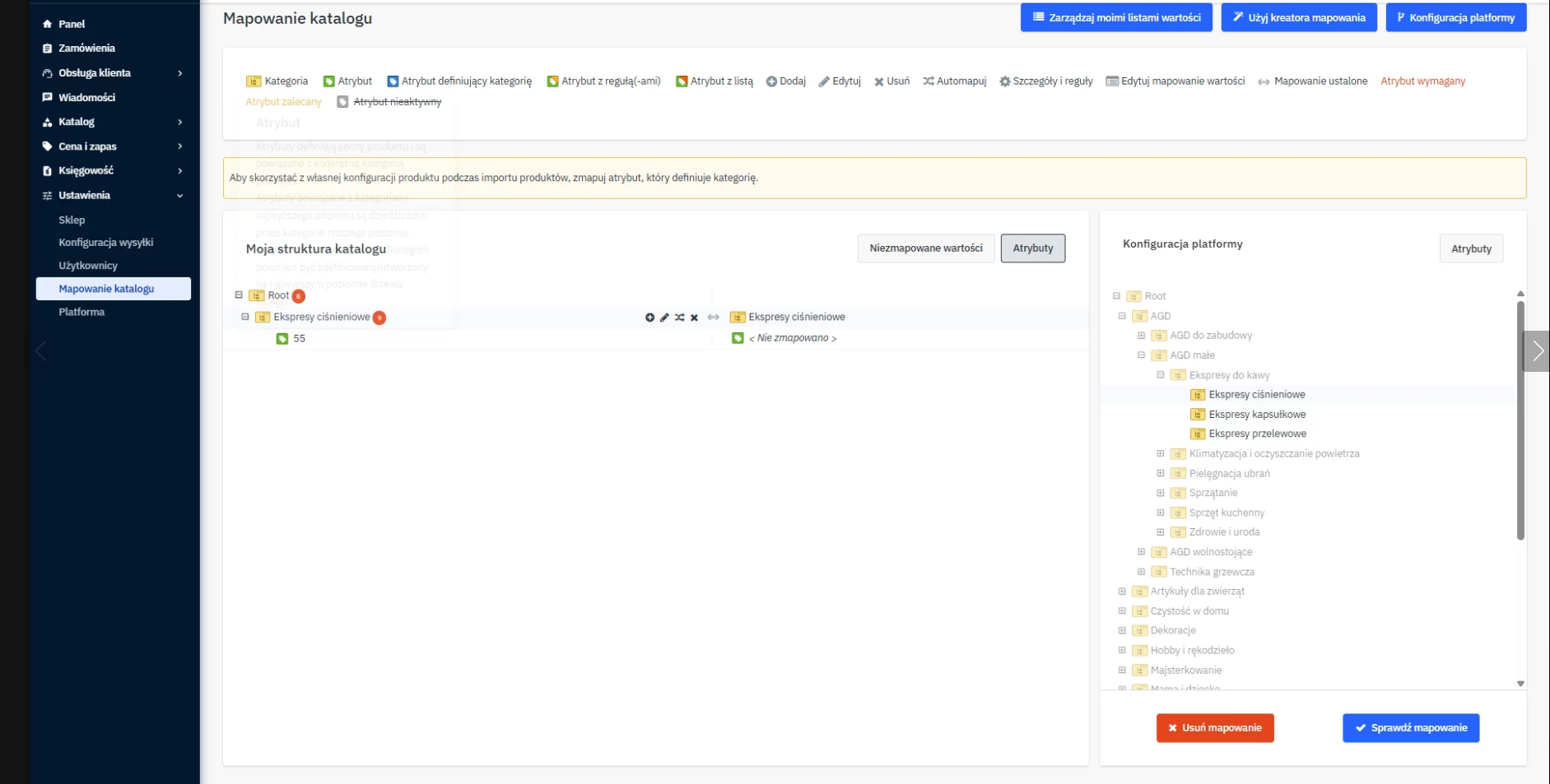 - Przejdź do zakładki Ustawienia > Mapowanie katalogu.