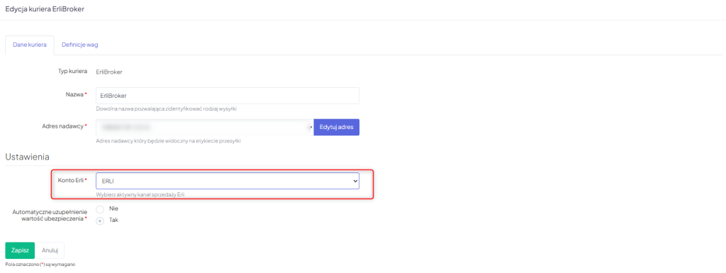 3. W polu Konto Erli wybierz konto dodane w kroku nr 2.