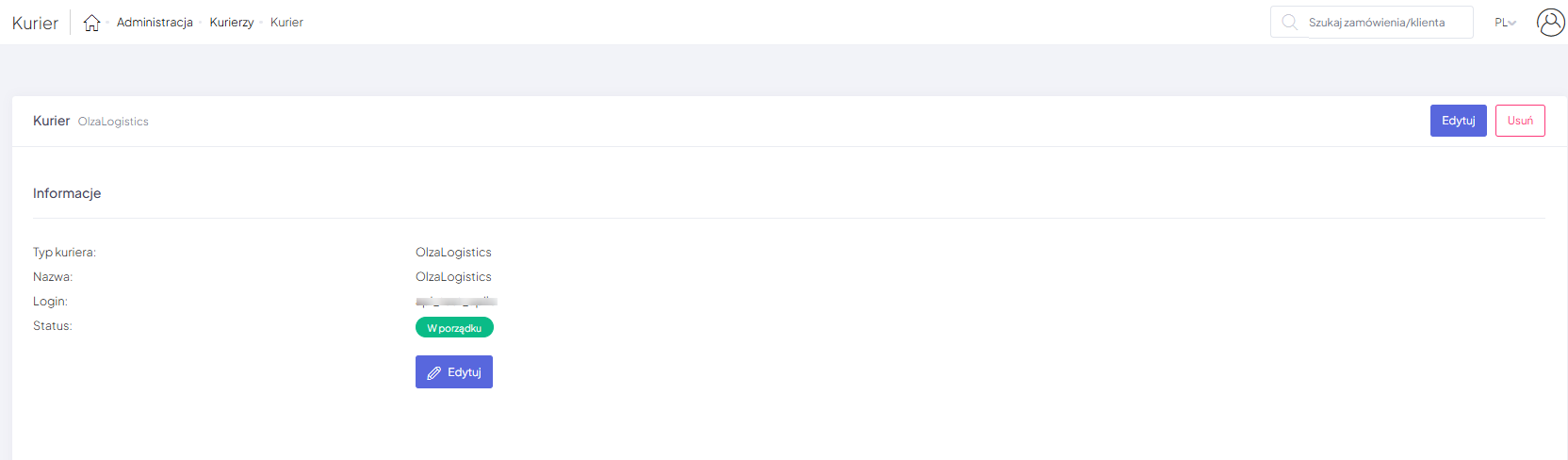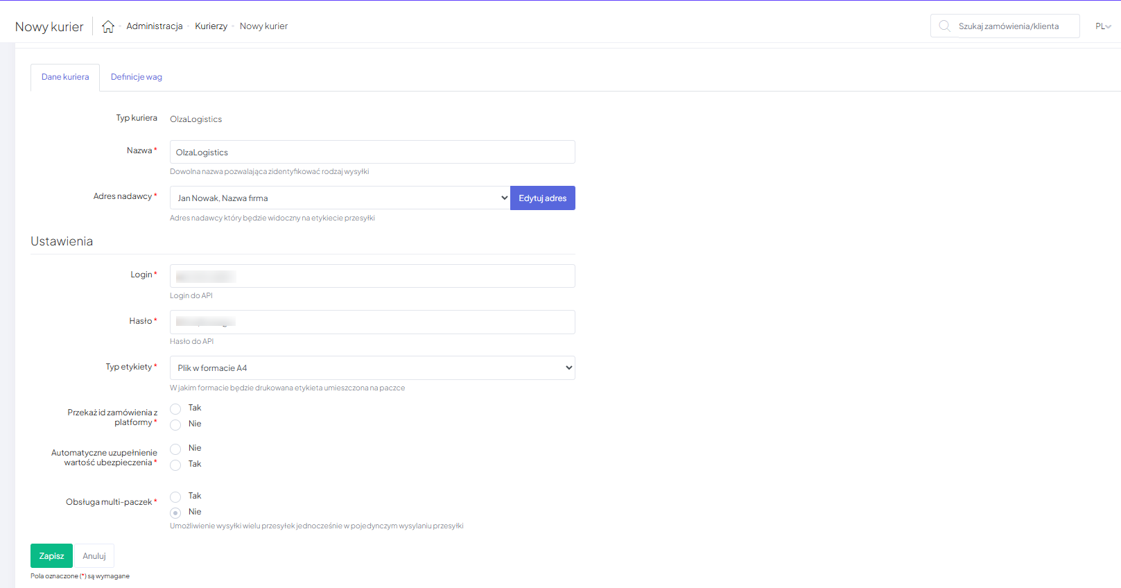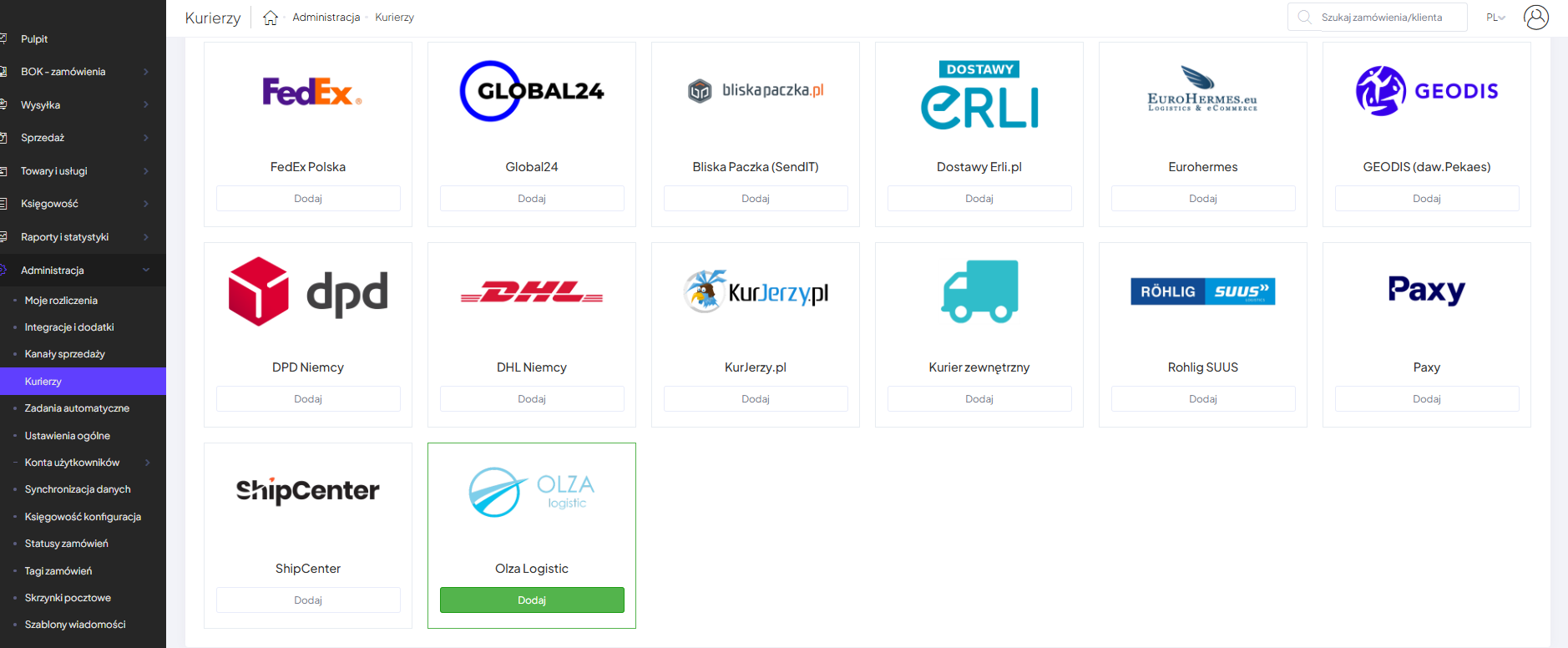 - przejdź do: Administracja > Kurierzy i z listy dostępnych kurierów wybierz Olza Logistic