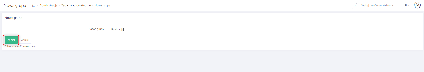 Nową, dedykowaną grupę stworzysz, nadając jej nazwę, a następnie klikając przycisk „Zapisz”.