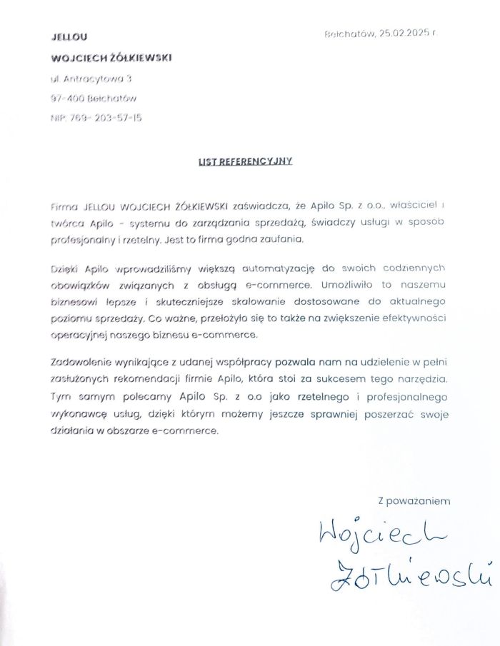 Dopiero zaczęliśmy korzystać z usług Apilo, ale już teraz dostrzegamy, jak bardzo ułatwia zarządzanie sprzedażą na różnych platformach. Jesteśmy pozytywnie zaskoczeni intuicyjnym działaniem oraz funkcjonalnością systemu, które znacząco usprawniają obsługę zamówień klientów. Z pełnym przekonaniem polecamy.